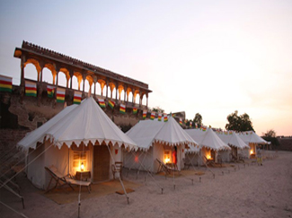 Camping-In-RajasthanCamping Rajasthan in tents in the sand dunes of the Thar Desert underneath the star-studded sky, you feel the cool desert breeze and wonder about life in the untamed countryside of this fascinating desert.The sand dunes of the Thar Desert with their breath taking beauty carved by the wind, as it were wrinkled, create a mystical picture in the minds of people. The panoramic view especially during sunrise or sunset, astride a camel, leaves an indelible image in the mind. In this backdrop of the desert landscape and the ruggedness of the expanse of the desert one can spends hours admiring this marvel of nature. A better way is to take wings and watch the spectacle of the Demoiselle cranes. Or hire a jeep and zip away. Or just camp in the night under the desert skies accompanied by the bright stars that reflect dreams of yore.